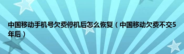 大家好,我是小跳,我来为大家解答以上问题。中国移动手机号欠费停机后怎么恢复,中国移动欠费不交5年后很多人还不知道,现在让我们一起来看看吧!