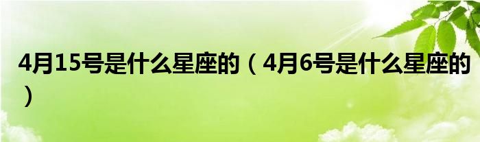 大家好,我是小跳,我来为大家解答以上问题。4月15号是什么星座的,4月6号是什么星座的很多人还不知道,现在让我们一起来看看吧!