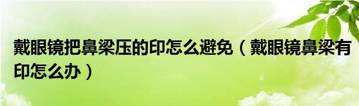 戴眼镜把鼻梁压的印怎么避免(戴眼镜鼻梁有印怎么办),有没有人理理我?急需求助!