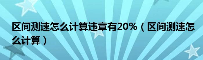 区间测速怎么计算违章有20%(区间测速怎么计算),有没有人理理我呀?急死啦!