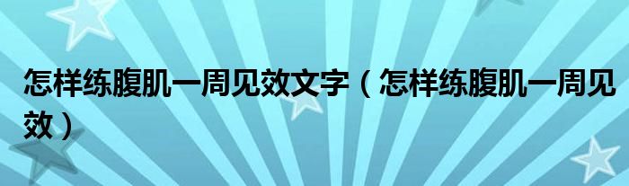 大家好,我是小跳,我来为大家解答以上问题。怎样练腹肌一周见效文字,怎样练腹肌一周见效很多人还不知道,现在让我们一起来看看吧!