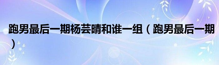 跑男最后一期杨芸晴和谁一组(跑男最后一期),在线等,求大佬翻我牌子!
