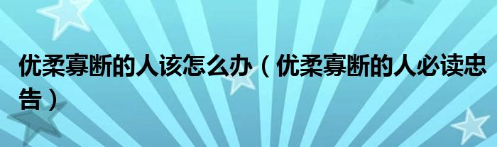 优柔寡断的人该怎么办(优柔寡断的人必读忠告),求路过的大神留个言,帮个忙!