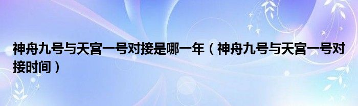 神舟九号与天宫一号对接是哪一年(神舟九号与天宫一号对接时间),在线等,求大佬翻牌!