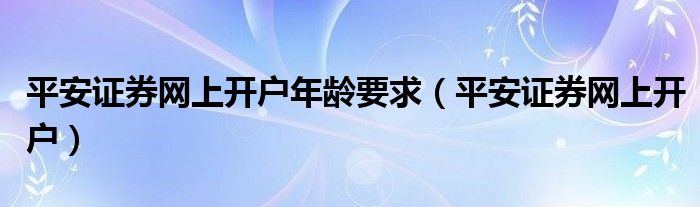 平安证券网上开户年龄要求(平安证券网上开户),时间紧迫,求直接说步骤!