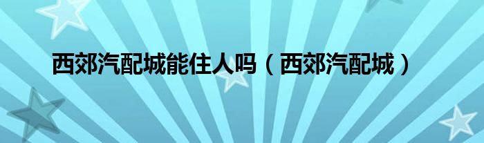 西郊汽配城能住人吗(西郊汽配城),急!求解答,求别让我失望!