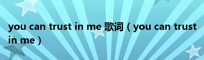 大家好,我是小跳,我来为大家解答以上问题。you can trust in me 歌词,you can trust in me很多人还不知道,现在让我们一起来看看吧!