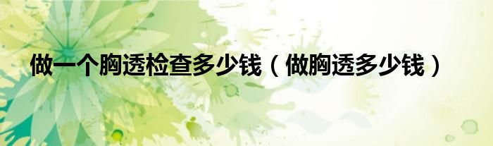 做一个胸透检查多少钱(做胸透多少钱),在线等,求秒回,真的十万火急!