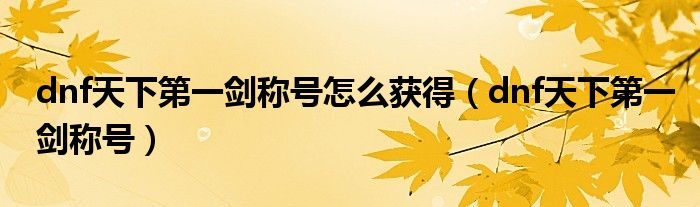 dnf天下第一剑称号怎么获得(dnf天下第一剑称号),跪求好心人,别让我孤军奋战!