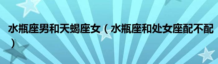 大家好,我是小跳,我来为大家解答以上问题。水瓶座男和天蝎座女,水瓶座和处女座配不配很多人还不知道,现在让我们一起来看看吧!