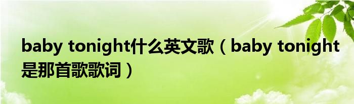 大家好,我是小跳,我来为大家解答以上问题。baby tonight什么英文歌,baby tonight是那首歌歌词很多人还不知道,现在让我们一起来看看吧!