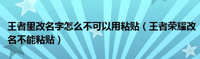 王者里改名字怎么不可以用粘贴(王者荣耀改名不能粘贴),急!求大佬出现,救急!