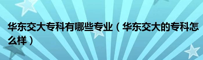 大家好,我是小跳,我来为大家解答以上问题。华东交大专科有哪些专业,华东交大的专科怎么样很多人还不知道,现在让我们一起来看看吧!