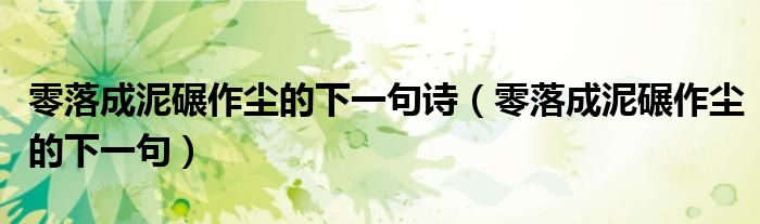 零落成泥碾作尘的下一句诗(零落成泥碾作尘的下一句),求路过的大神指点,急!