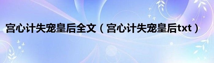 大家好,我是小跳,我来为大家解答以上问题。宫心计失宠皇后全文,宫心计失宠皇后txt很多人还不知道,现在让我们一起来看看吧!