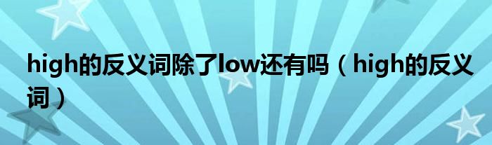 大家好,我是小跳,我来为大家解答以上问题。high的反义词除了low还有吗,high的反义词很多人还不知道,现在让我们一起来看看吧!