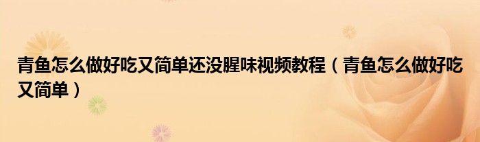 青鱼怎么做好吃又简单还没腥味视频教程(青鱼怎么做好吃又简单),蹲一个大佬,求不嫌弃我问题简单!