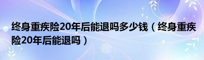 大家好,我是小跳,我来为大家解答以上问题。终身重疾险20年后能退吗多少钱,终身重疾险20年后能退吗很多人还不知道,现在让我们一起来看看吧!