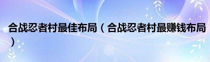 大家好,我是小跳,我来为大家解答以上问题。合战忍者村最佳布局,合战忍者村最赚钱布局很多人还不知道,现在让我们一起来看看吧!