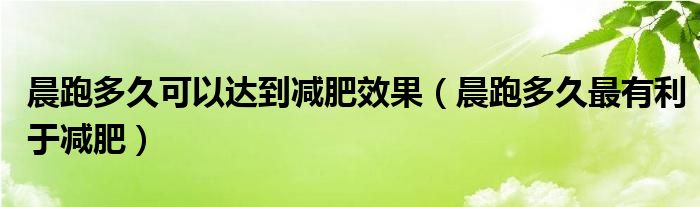 晨跑多久可以达到减肥效果(晨跑多久最有利于减肥),这个问题到底啥解法?求帮忙!
