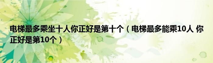 大家好,我是小跳,我来为大家解答以上问题。电梯最多乘坐十人你正好是第十个,电梯最多能乘10人 你正好是第10个很多人还不知道,现在让我们一起来看看吧!