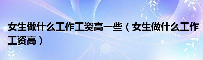 女生做什么工作工资高一些(女生做什么工作工资高),求路过的大神指点,急!