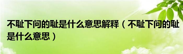 不耻下问的耻是什么意思解释(不耻下问的耻是什么意思),有没有大佬在?求高手帮忙看看这个!