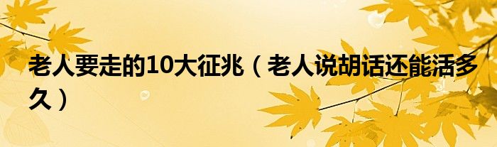大家好,我是小跳,我来为大家解答以上问题。老人要走的10大征兆,老人说胡话还能活多久很多人还不知道,现在让我们一起来看看吧!