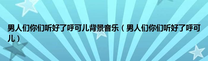 大家好,我是小跳,我来为大家解答以上问题。男人们你们听好了呼可儿背景音乐,男人们你们听好了呼可儿很多人还不知道,现在让我们一起来看看吧!
