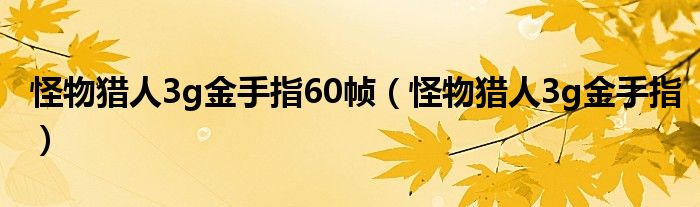 大家好,我是小跳,我来为大家解答以上问题。怪物猎人3g金手指60帧,怪物猎人3g金手指很多人还不知道,现在让我们一起来看看吧!
