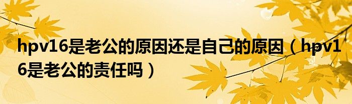 大家好,我是小跳,我来为大家解答以上问题。hpv16是老公的原因还是自己的原因,hpv16是老公的责任吗很多人还不知道,现在让我们一起来看看吧!