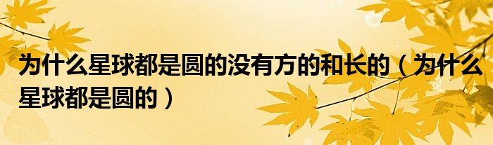 大家好,我是小跳,我来为大家解答以上问题。为什么星球都是圆的没有方的和长的,为什么星球都是圆的很多人还不知道,现在让我们一起来看看吧!