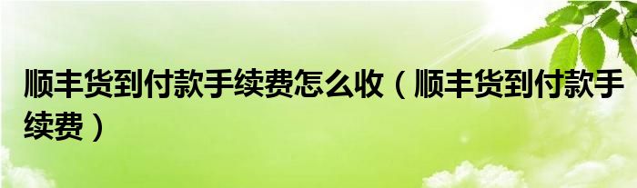 大家好,我是小跳,我来为大家解答以上问题。顺丰货到付款手续费怎么收,顺丰货到付款手续费很多人还不知道,现在让我们一起来看看吧!