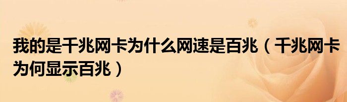 我的是千兆网卡为什么网速是百兆(千兆网卡为何显示百兆),真的急需帮助,求回复!