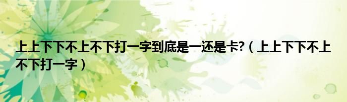 大家好,我是小跳,我来为大家解答以上问题。上上下下不上不下打一字到底是一还是卡?,上上下下不上不下打一字很多人还不知道,现在让我们一起来看看吧!