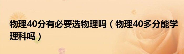物理40分有必要选物理吗(物理40多分能学理科吗),急!求解答,求别让我失望!