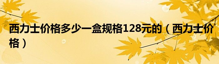 大家好,我是小跳,我来为大家解答以上问题。西力士价格多少一盒规格128元的,西力士价格很多人还不知道,现在让我们一起来看看吧!