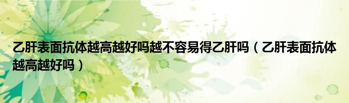 大家好,我是小跳,我来为大家解答以上问题。乙肝表面抗体越高越好吗越不容易得乙肝吗,乙肝表面抗体越高越好吗很多人还不知道,现在让我们一起来看看吧!