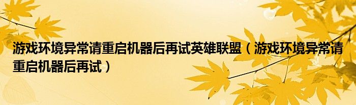 游戏环境异常请重启机器后再试英雄联盟(游戏环境异常请重启机器后再试),真的急需答案,求回复求回复!
