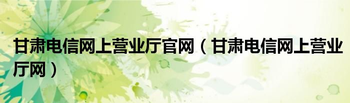 大家好,我是小跳,我来为大家解答以上问题。甘肃电信网上营业厅官网,甘肃电信网上营业厅网很多人还不知道,现在让我们一起来看看吧!