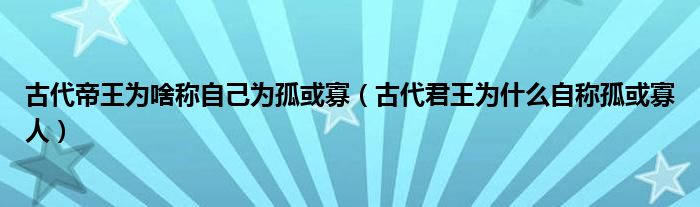 大家好,我是小跳,我来为大家解答以上问题。古代帝王为啥称自己为孤或寡,古代君王为什么自称孤或寡人很多人还不知道,现在让我们一起来看看吧!