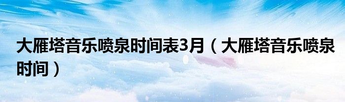 大家好,我是小跳,我来为大家解答以上问题。大雁塔音乐喷泉时间表3月,大雁塔音乐喷泉时间很多人还不知道,现在让我们一起来看看吧!