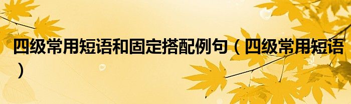 大家好,我是小跳,我来为大家解答以上问题。四级常用短语和固定搭配例句,四级常用短语很多人还不知道,现在让我们一起来看看吧!