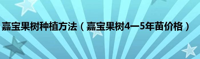 嘉宝果树种植方法(嘉宝果树4一5年苗价格),求快速回复,真的等不了了!