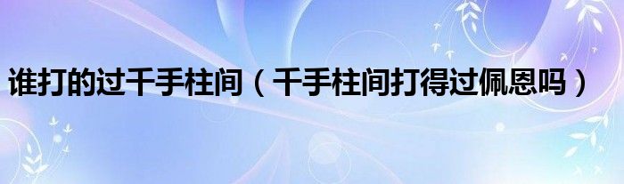 谁打的过千手柱间(千手柱间打得过佩恩吗),跪求万能的知友,帮我看看!