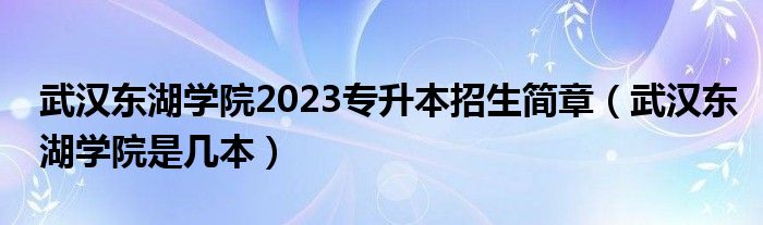 武汉东湖学院2023专升本招生简章(武汉东湖学院是几本)!时间紧迫,求快速解答!