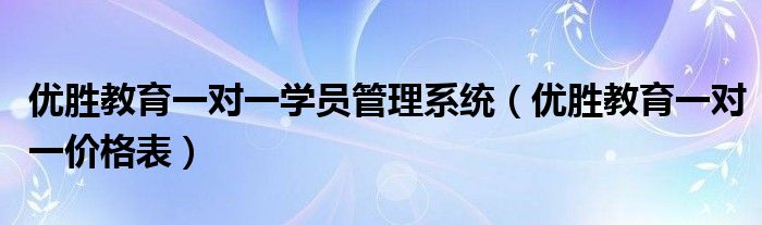 大家好,我是小跳,我来为大家解答以上问题。优胜教育一对一学员管理系统,优胜教育一对一价格表很多人还不知道,现在让我们一起来看看吧!