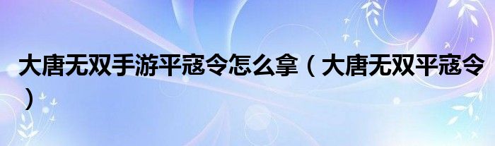 大唐无双手游平寇令怎么拿(大唐无双平寇令)求高手给解答