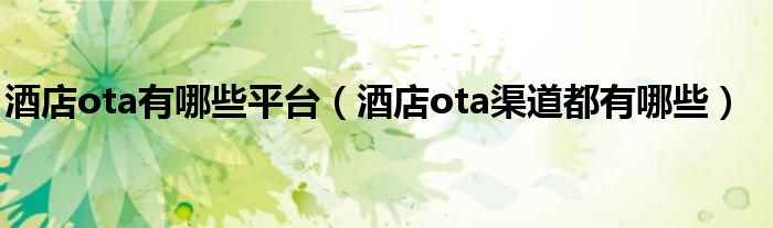 酒店ota有哪些平台(酒店ota渠道都有哪些),在线等,求秒回,真的火烧眉毛!