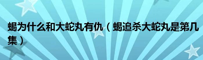 大家好,我是小跳,我来为大家解答以上问题。蝎为什么和大蛇丸有仇,蝎追杀大蛇丸是第几集很多人还不知道,现在让我们一起来看看吧!